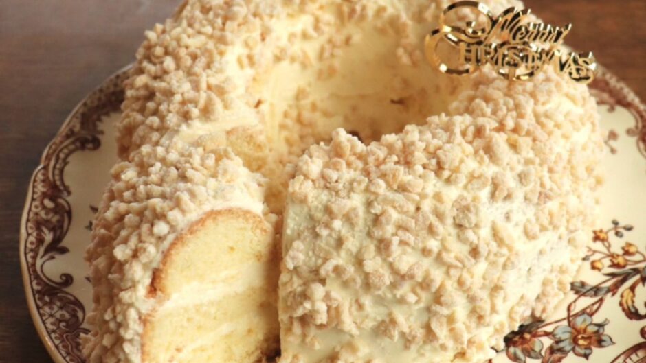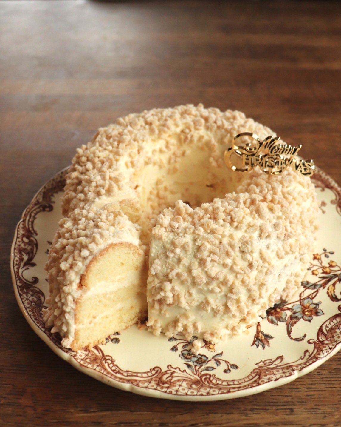 リング状のスポンジ 生地ににバタークリームを塗り、